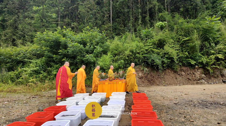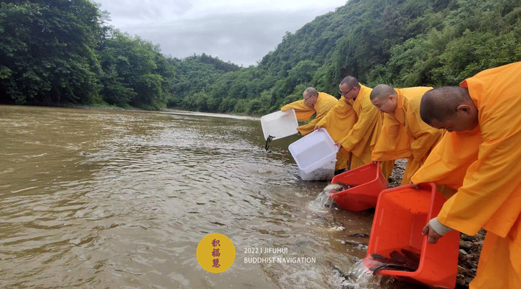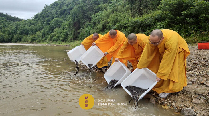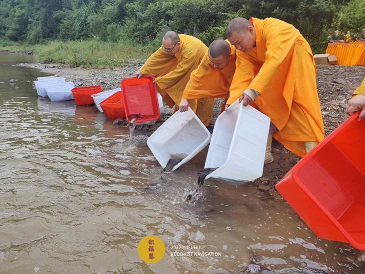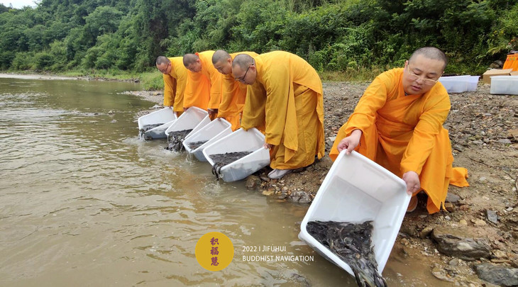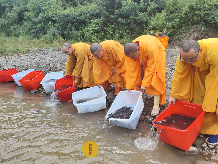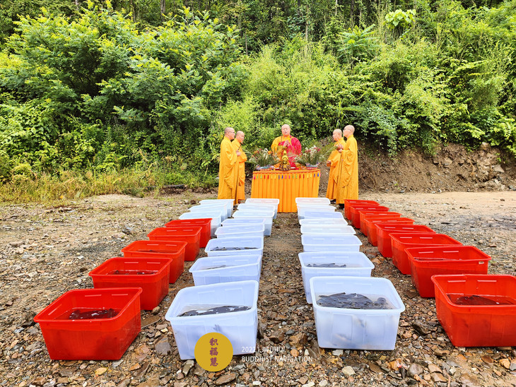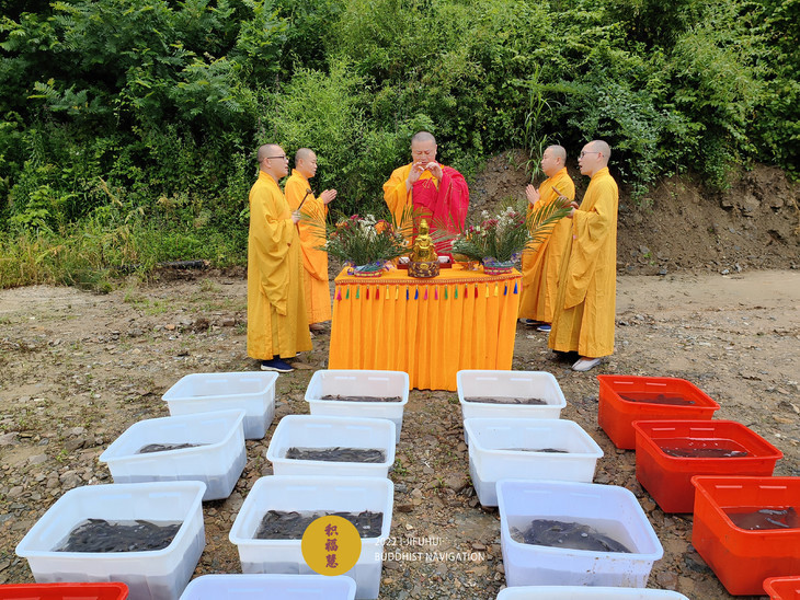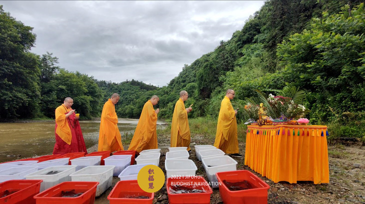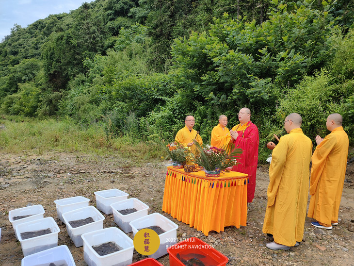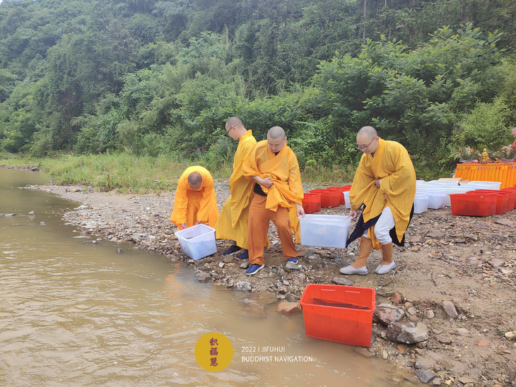 仪轨圆满。搬运水族众生到河边。