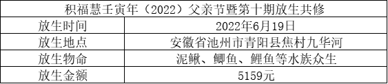 积福慧以此壬寅年父亲节暨第十期护生功德回向众等在世父母身体安康,福慧增长,六时吉祥!愿累世父母蒙佛慈悲接引,业障消除,永脱轮回苦海,离苦得乐,早证菩提,广度一切有情!