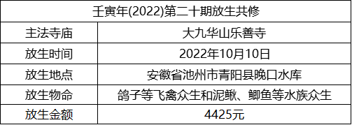 愿以此壬寅年第二十期放生共修功德回向亲自放生者、出资放生者、乃至一念随喜者,事业顺利、资财丰饶、福德增长、受用无缺、运程顺遂、所求圆满。祈愿所放的众生和我们的父母、亲友以及所有的如母有情,都能现世离苦得乐,走上菩提正道。
