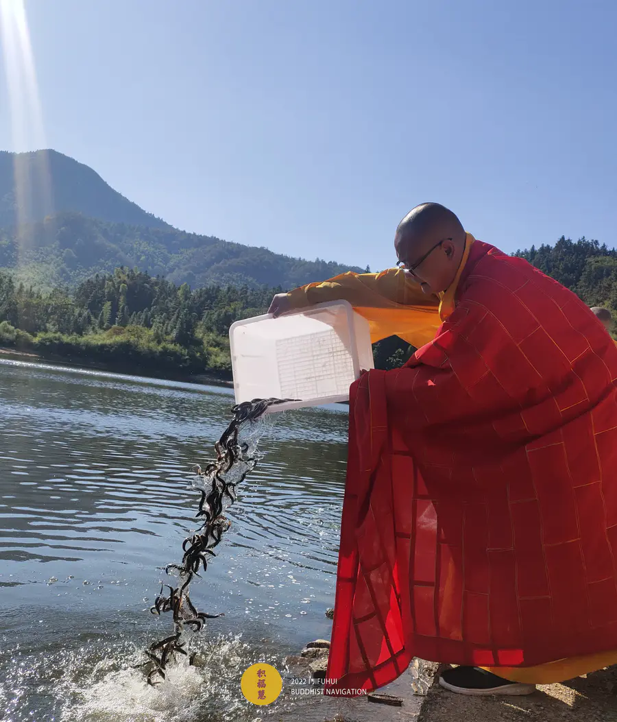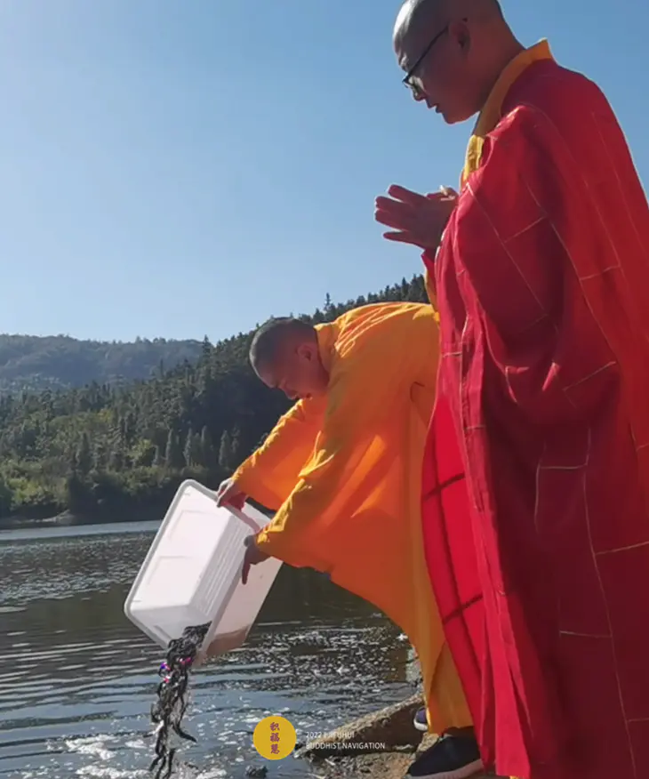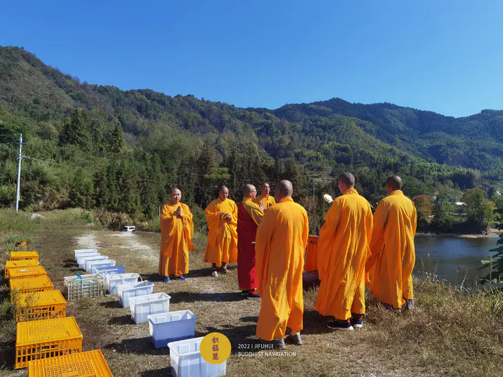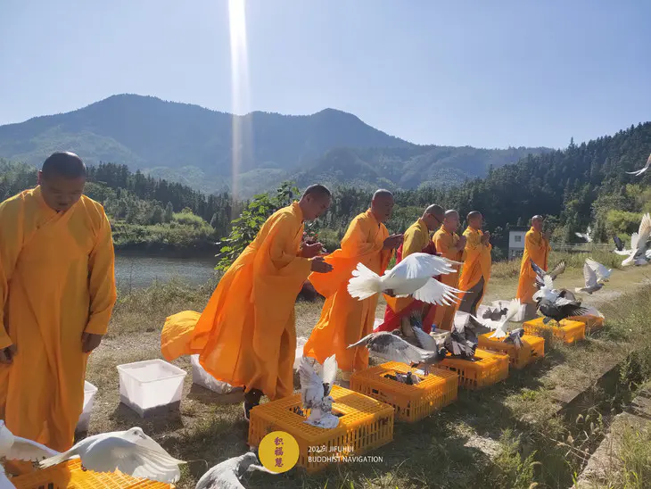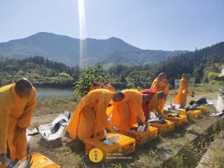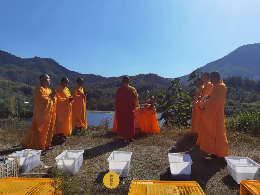 2022年10月24日,壬寅年九月十九,九华山道场、曲靖道场启建壬寅年观世音菩萨出家日供灯供水共修,如理如法按次第起供,直至10月20日供圆满。同日,九华山道场诸位法师在安徽省池州市青阳县晚口水库举行放生法会。放生鸽子等飞禽和泥鳅、鲫鱼、鲤鱼等水族众生(非野生动物)金额合计5022元。