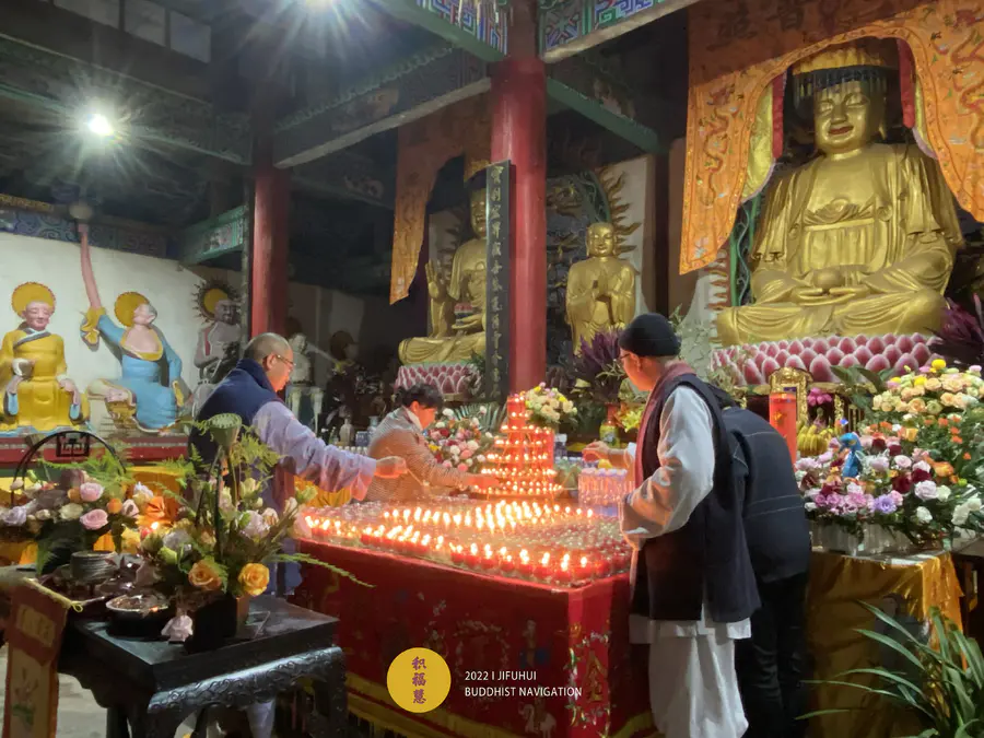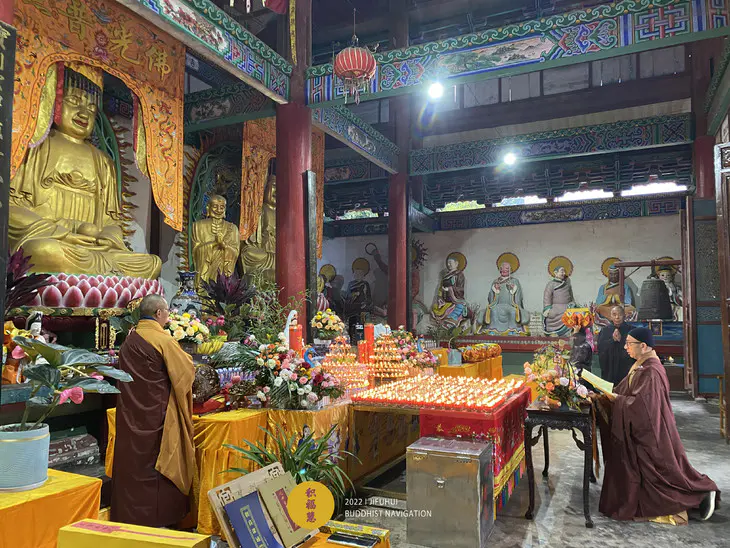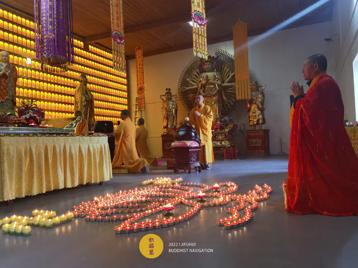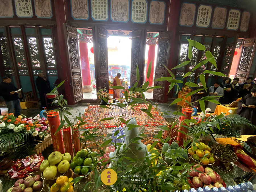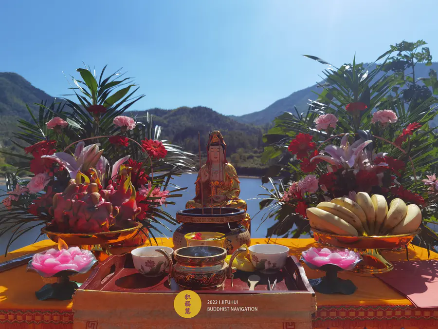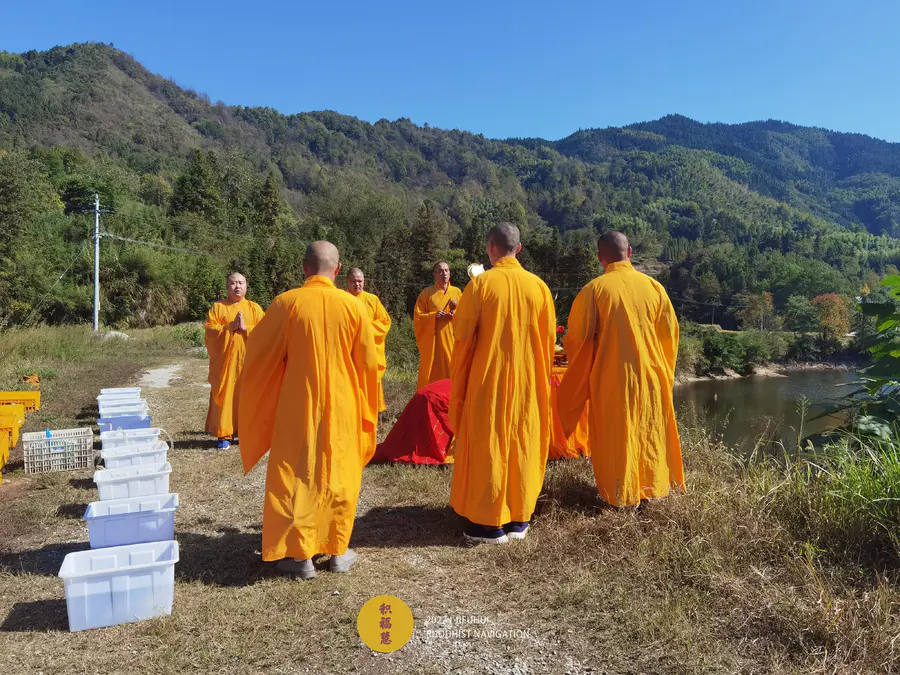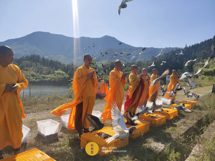 2022年10月24日,壬寅年九月十九,九华山道场、曲靖道场启建壬寅年观世音菩萨出家日供灯供水共修,如理如法按次第起供,直至10月20日供圆满。同日,九华山道场诸位法师在安徽省池州市青阳县晚口水库举行放生法会。放生鸽子等飞禽和泥鳅、鲫鱼、鲤鱼等水族众生(非野生动物)金额合计5022元。