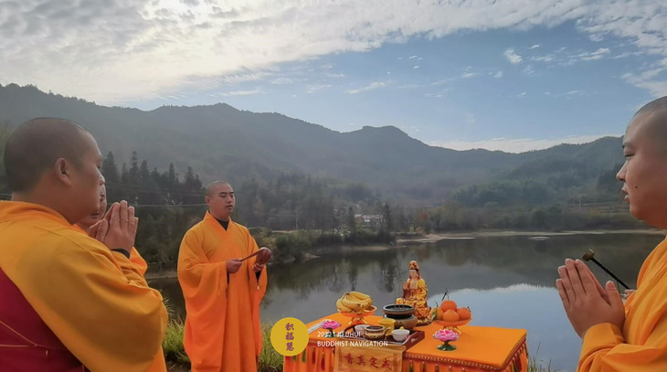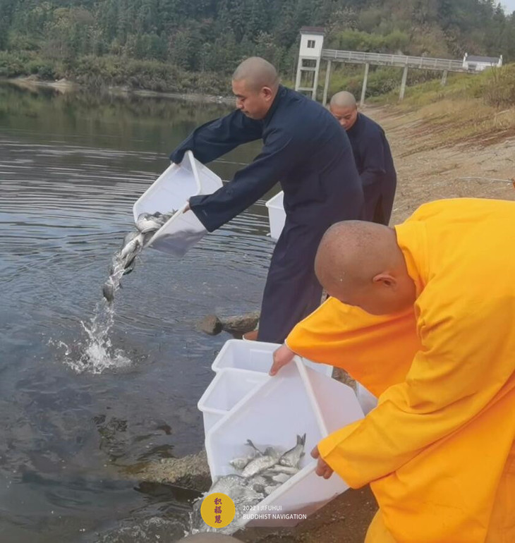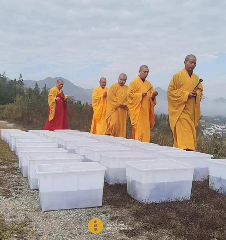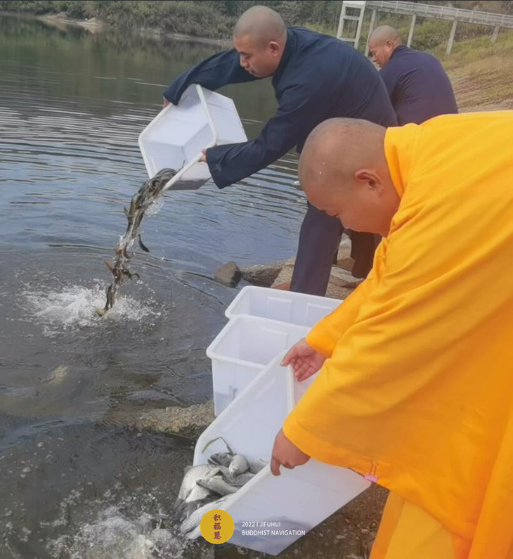 依照放生仪轨,佛号声声,如理如法。愿此放生菩提行愿,念念增明,救护众生,福慧圆满。