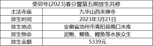 癸卯年春分暨第五期护生共修自2023年3月12日启建,至2023年3月20日24时停止接收护生款,共计9天,同修随喜护生款5339元。