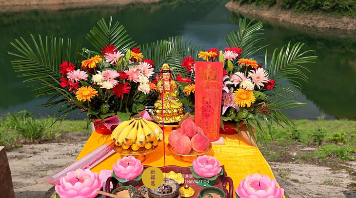 水库上设香案,备净水杨枝。一心奉请观世音菩萨慈悲加持。