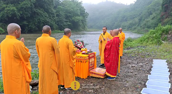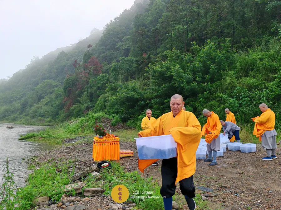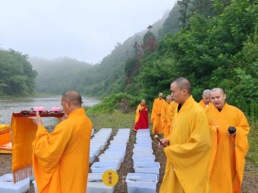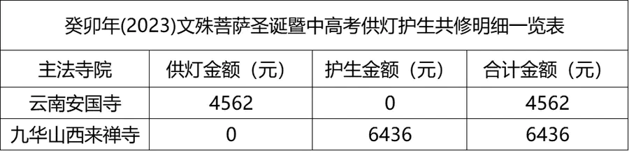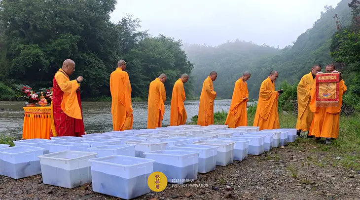 2023年5月22日,癸卯年四月初四,云南安国寺启建文殊菩萨圣诞供灯共修,如理如法按次第起供,直至6月30日供圆满。同日,九华山西来禅寺诸位法师在安徽省池州市青阳县焦村九华河解救泥鳅、鲫鱼、鲤鱼等水族众生(非野生动物)金额合计6436元。