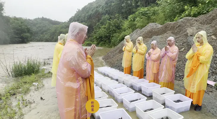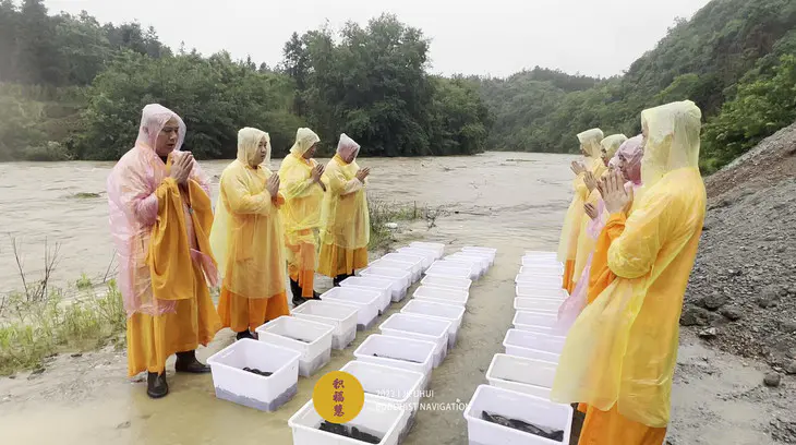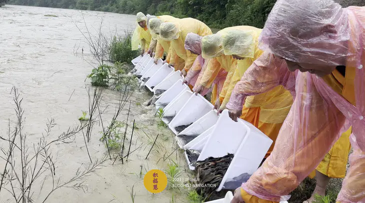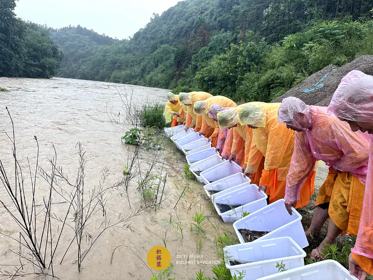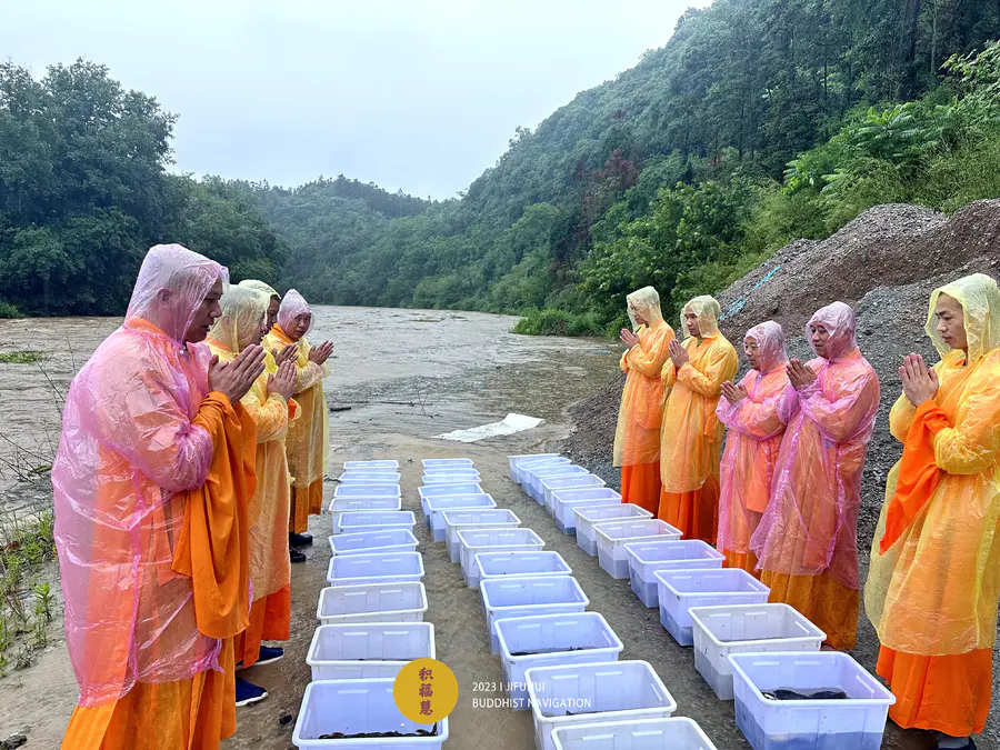 2023年5月26日,癸卯年四月初八,曲靖道场启建释迦牟尼佛圣诞暨浴佛节活动,如理如法按次第起供,直至6月1日供圆满。同日,九华山道场诸位法师在安徽省池州市青阳县焦村九华河救护泥鳅、鲫鱼、鲤鱼等水族众生(非野生动物)金额合计5925元。