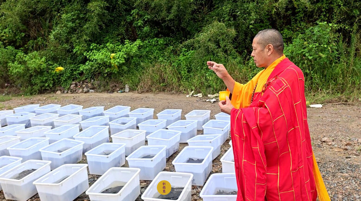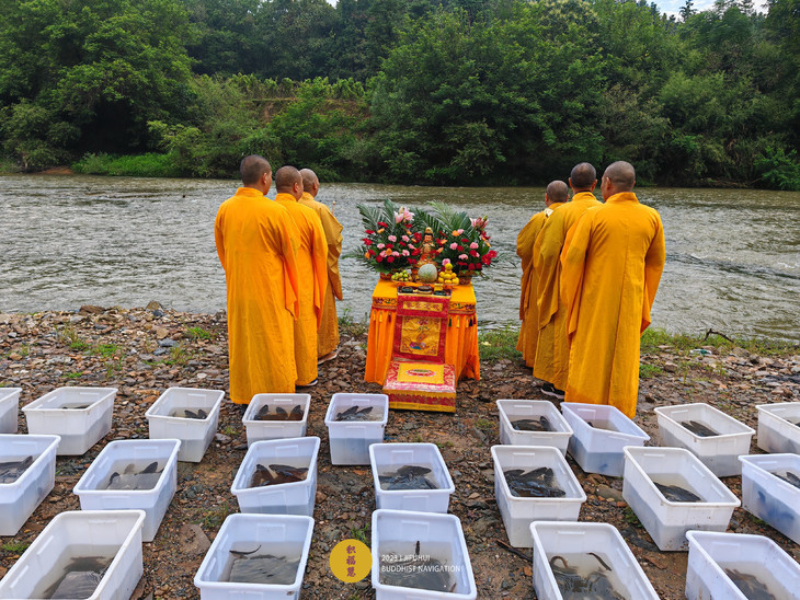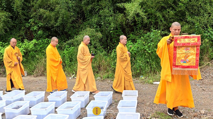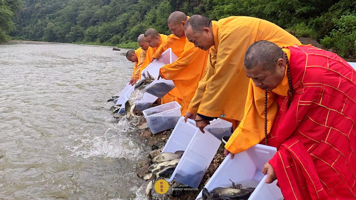 同日,九华山地藏道场诸位法师举行盂兰盆节护生法会。