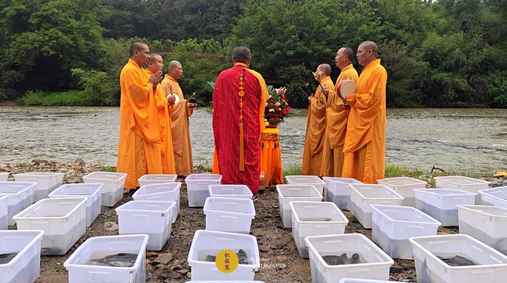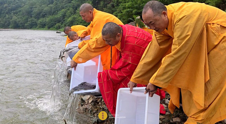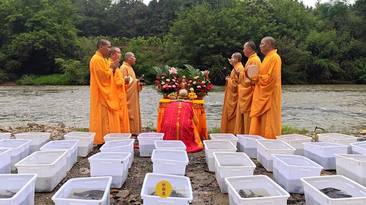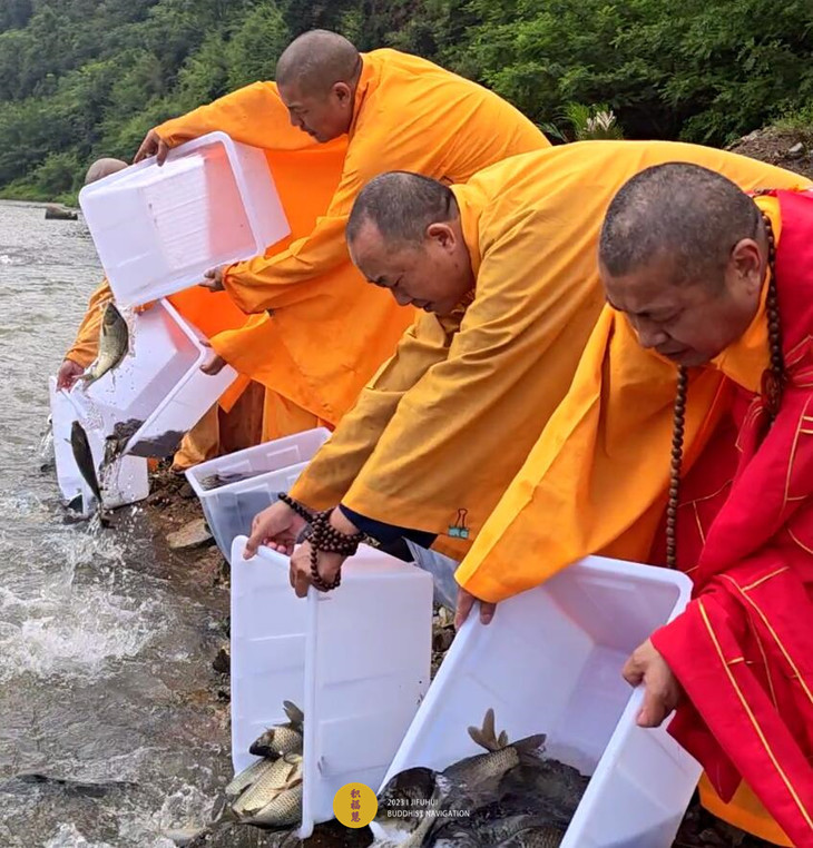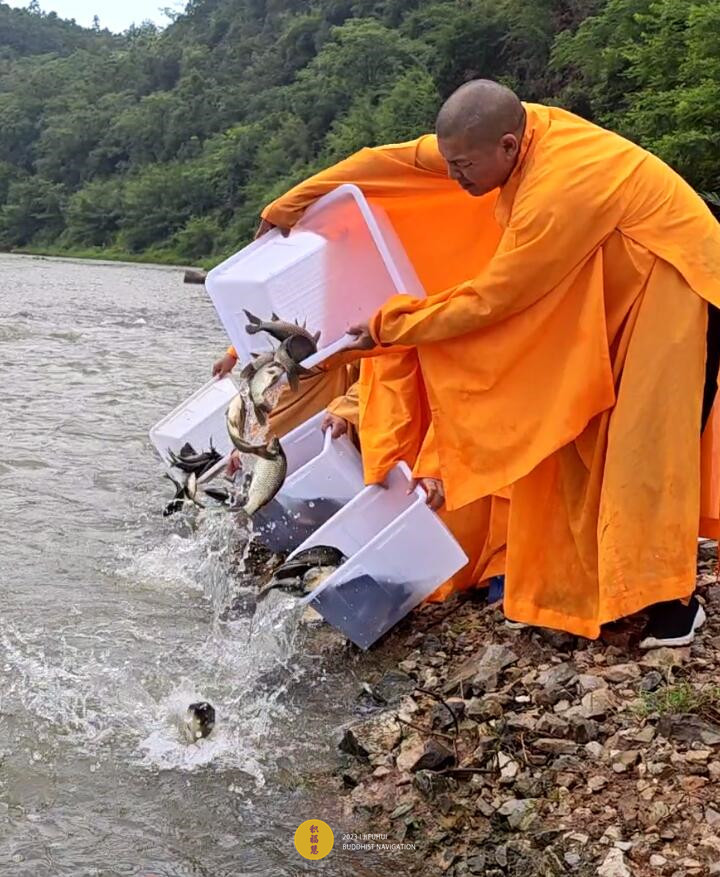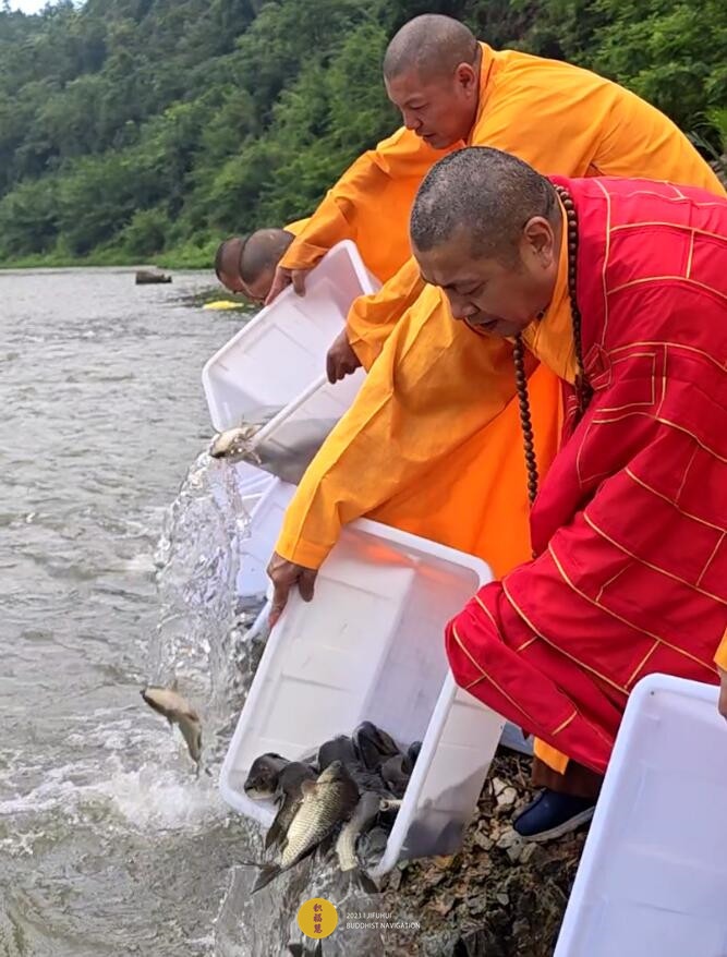 同日,九华山道场诸位法师在安徽省池州市青阳县焦村九华河解救泥鳅、鲫鱼、鲤鱼等水族众生(非野生动物)金额合计5120元。