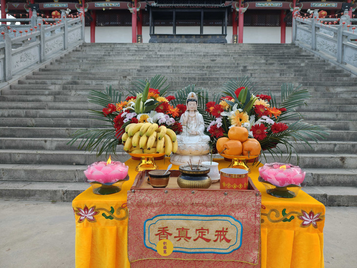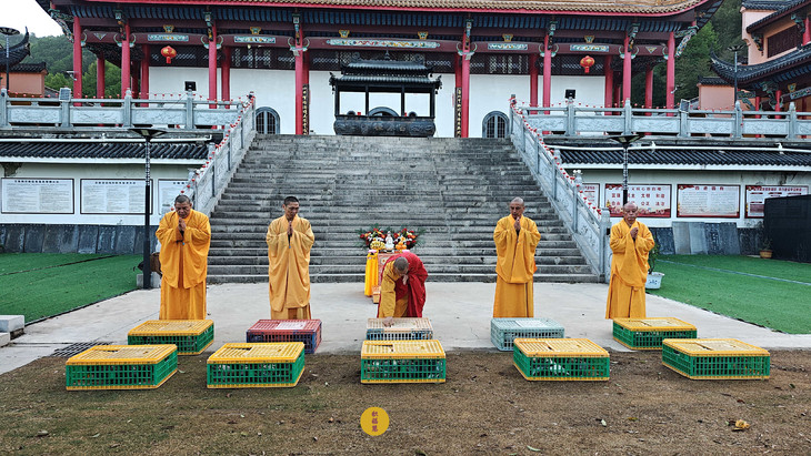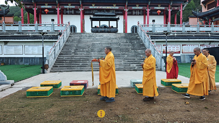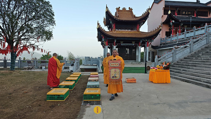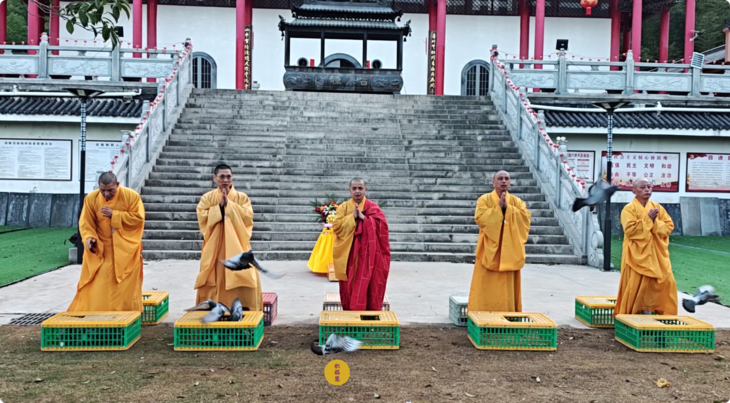 2025年4月13日,乙巳年三月十六,云南安国寺启建准提菩萨圣诞供灯供水法会,如理如法按次第起供,至2025年4月19日供圆满。同日,九华山西来禅寺诸位法师在九华山西来禅寺大雄宝殿启建放生法会,放生鸽子等飞禽众生。