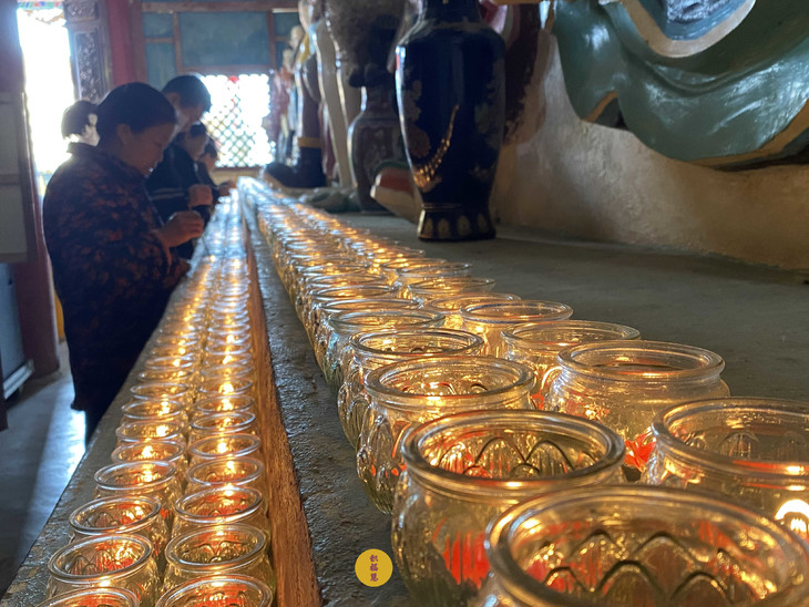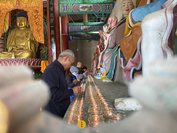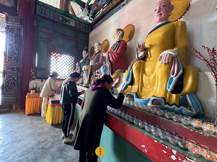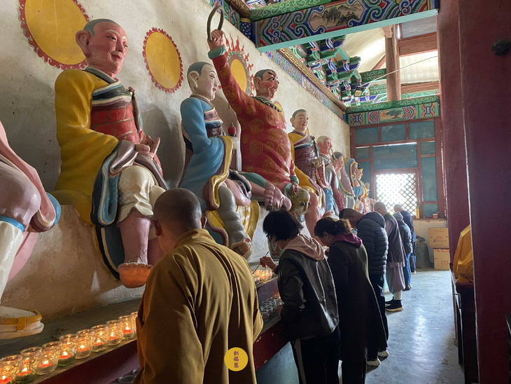 大众收摄身心,点燃佛前灯。千盏酥油灯次第燃亮,恰似繁星坠入娑婆。