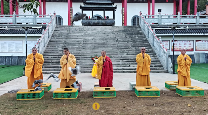 众法师开始放生鸽子