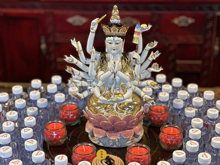 准提菩萨十八臂手中所持的绢索、宝瓶等法器,恰是对六道众生的慈悲接引,此刻化作放生善行中的无量悲心。