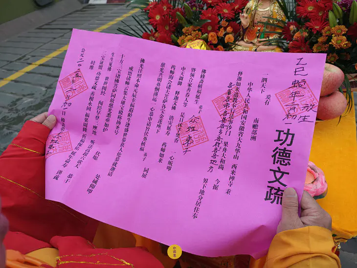 宣读放生功德文疏,圆满回向