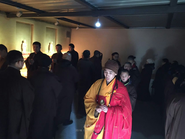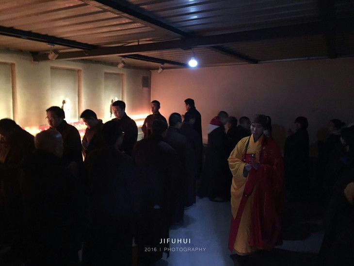 诵经结束后,法师带领大众口称本师释迦牟尼佛名号,前往灯院供灯。