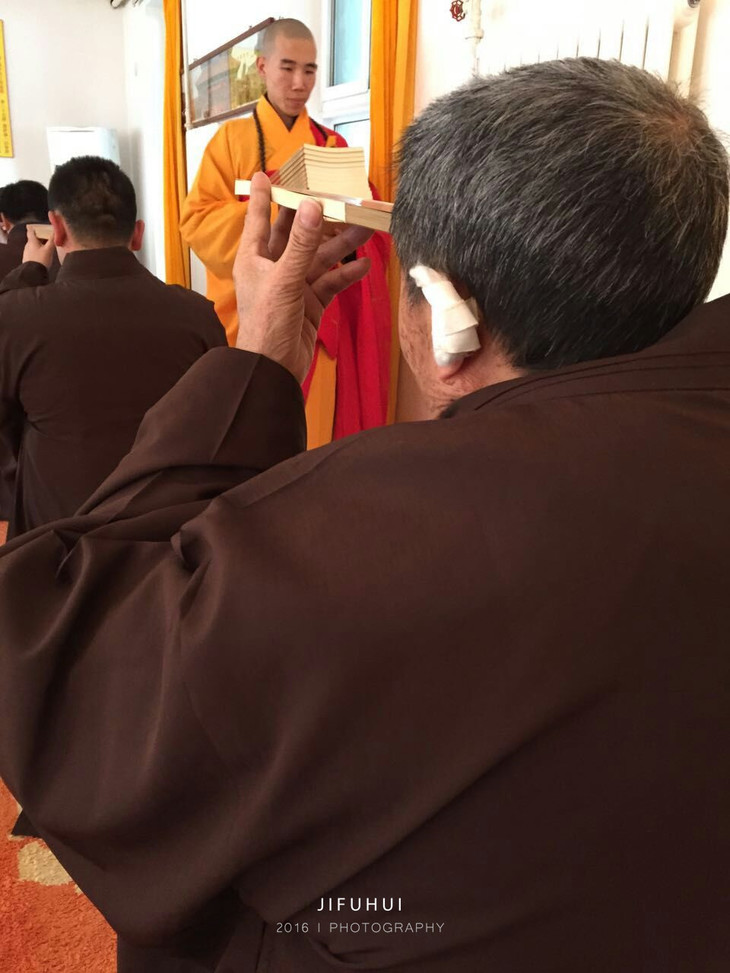 喝完腊八粥,大众依次来到已闭关近两年的新贤法师关房,由法师引领传灯。