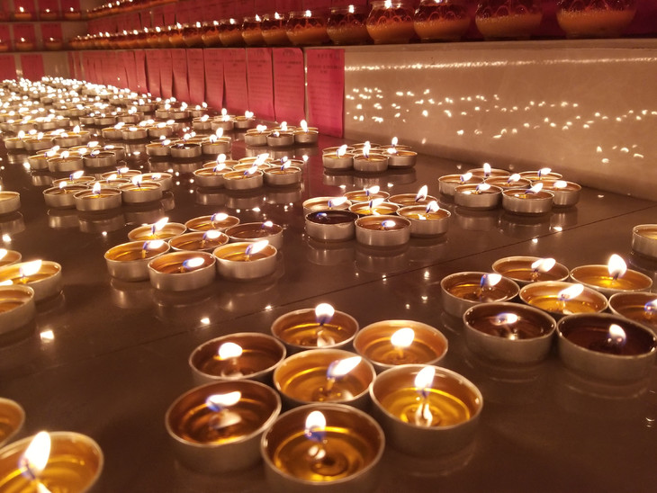 以此供灯殊胜功德,回向给出资供灯者、点灯者及随喜参与者,愿佛菩萨慈悲加护,令弟子众等罪障消除、福慧增长、平安顺利、身体健康,吉祥如意、道业精进。回向现生父母身体健康、延年益寿、早闻佛法、究竟成就;先亡祖妣,历劫怨亲,俱蒙佛慈,获本妙心,速超圣地、莲品增上。