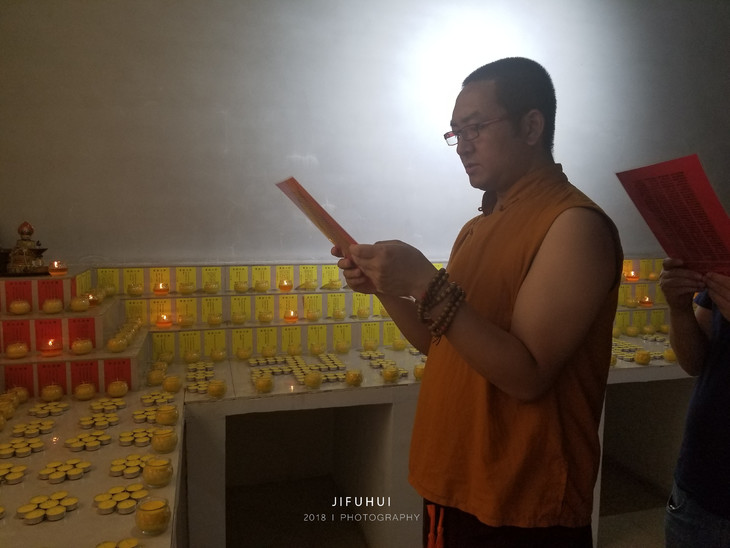 酥油灯摆放就位,上师引领念诵《供灯祈愿文》和《普贤行愿品》。