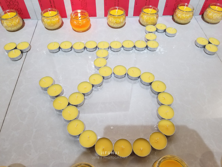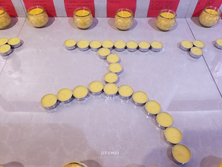 接着在两侧的供台上摆出莲花和万字的图案。