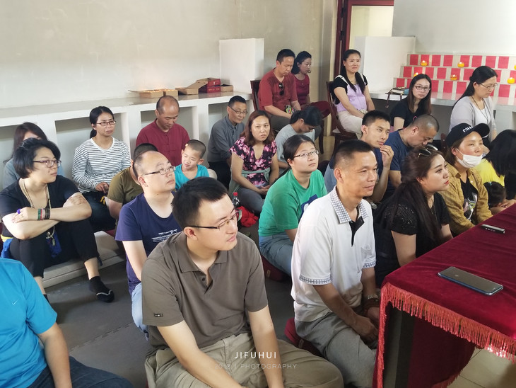 法义分享圆满,上师引领大众摆灯。