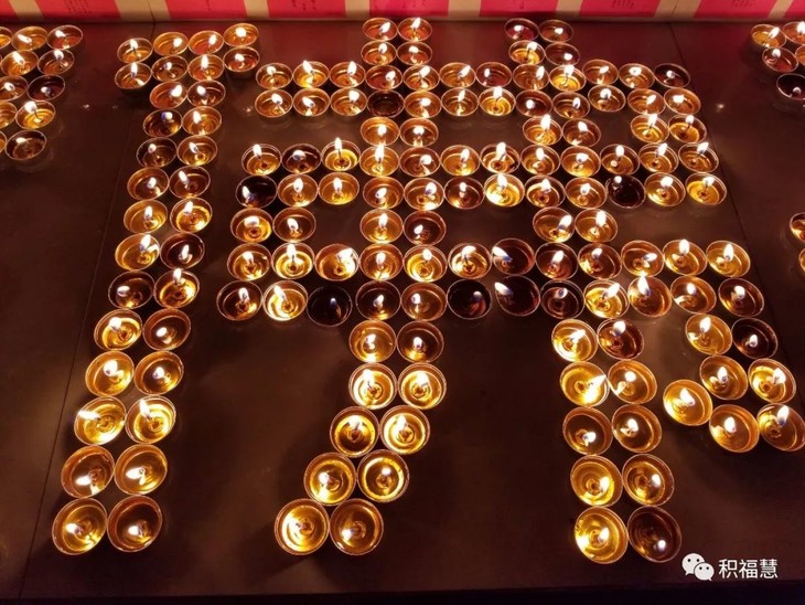 积福慧以此戊戌年释迦牟尼佛圣诞供灯功德悉皆回向点灯者、出资供灯者、及随喜参与者,得佛陀甘露法水,洗涤内心烦恼尘垢,身心光洁、涵养德行、现受富乐,无病延年。于所愿求,无不遂意。亲友眷属,悉皆安稳。度脱七世父母及累劫怨亲眷属早离厄难,使法界六道众生出离苦海。让自性显发,同证如来清净法身。