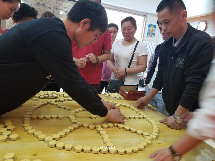 首先在供桌上确定所要排放的图案