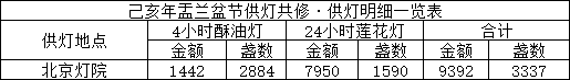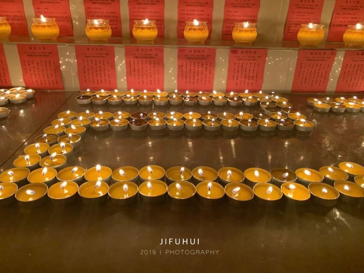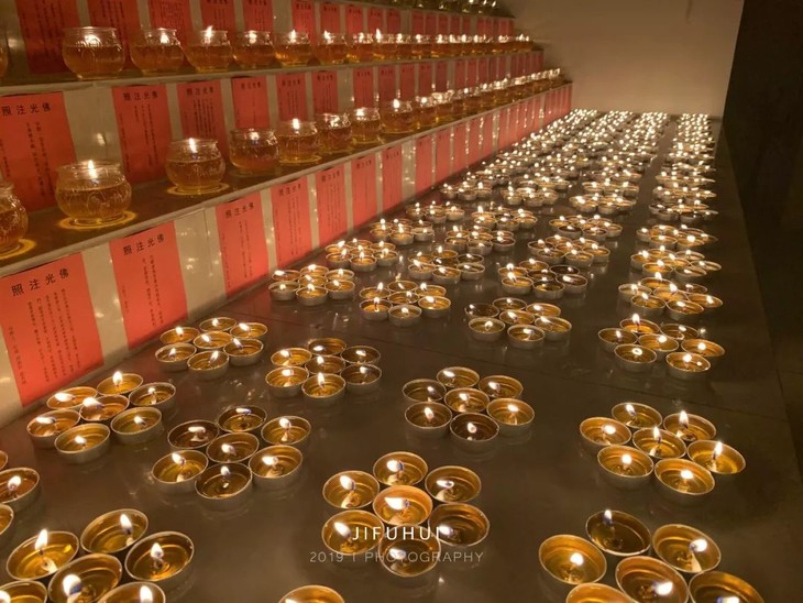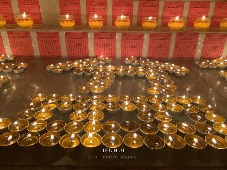 2019年8月15日盂兰盆节当天,积福慧在北京灯院举行供灯法会,如理如法按次第起供,直至8月28日供圆满。合计供4小时酥油灯2884盏,供24小时莲花灯1590盏。