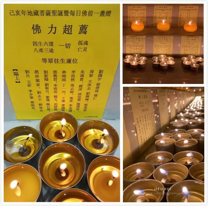 积福慧以此己亥年地藏菩萨圣诞供灯功德回向给出资供灯者、点灯者及随喜参与者,祈愿仰仗地藏菩萨大悲愿力,大誓愿力,供灯功德力,超拔十方受苦众生,速离恶道;历代宗亲眷属蒙佛接引,莲生九品;现世父母增福延寿、护法檀越,身心安康、法喜充满!