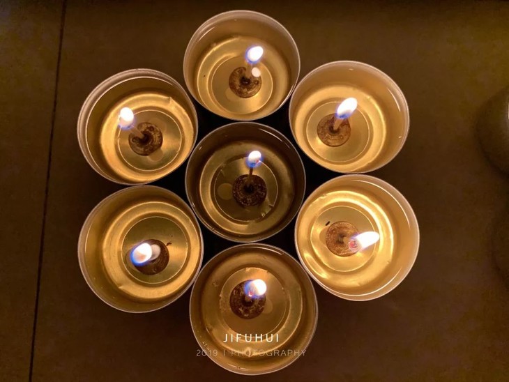 3、念诵佛号,开始供灯