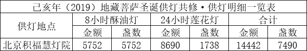 己亥年七月二十九,地藏王菩萨圣诞当天,积福慧在北京灯院举行供灯法会,如理如法按次第起供,直至明年(庚子)七月二十九供圆满。