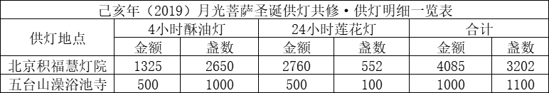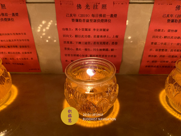 2019年9月13日,月光菩萨圣诞当天,积福慧分别在北京积福慧灯院、五台山澡浴池寺举行供灯法会,如理如法按次第起供,至9月19日供圆满。