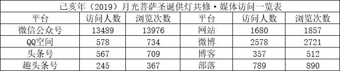 在此期间,佛教导航各媒体平台发布共修活动页面,访问总人数20283人,页面总浏览量21766次。共有1239人次通过积福慧微商城、微信群、微信转账等方式参与,随喜供灯款总额5085元。