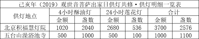 2019年10月17日,观世音菩萨出家日当天,积福慧分别在北京积福慧灯院、五台山澡浴池寺启建供灯法会,如理如法按次第起供,至10月17日供圆满。