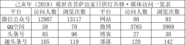 在此期间,佛教导航各媒体平台发布共修活动页面,访问总人数17227人,页面总浏览量17636次。共有2504人次通过积福慧微商城、微信群、微信、支付宝转账等方式参与,随喜供灯款总额4700元。