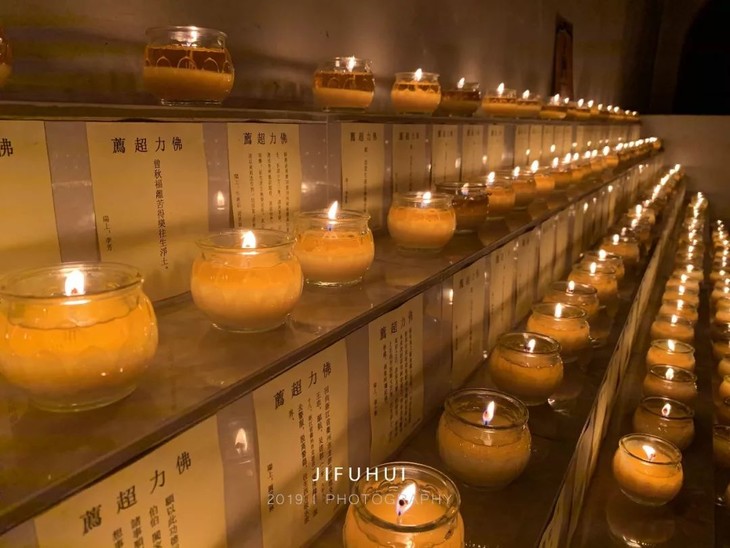 3、念诵佛号,开始供灯