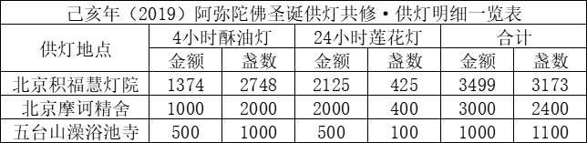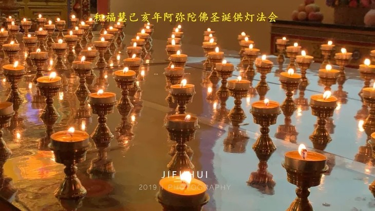 积福慧以此己亥年阿弥陀佛圣诞供灯功德悉皆回向给出资供灯者、点灯者、乃至一念随喜供灯者,祈愿众等身心安康,无诸痛苦,业障消除,福慧增长,得闻佛法,信受奉持,皈依佛门,精进修行,往生极乐,脱轮回苦,证涅槃乐,成无上佛果!