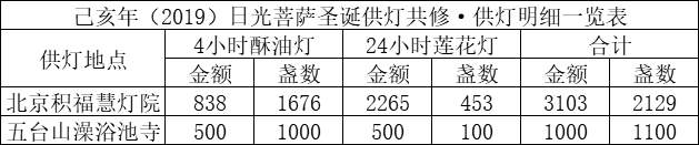 2019年12月14日,日光菩萨圣诞当天,积福慧分别在北京积福慧灯院、五台山澡浴池寺启建供灯法会,如理如法按次第起供,至12月20日供圆满。