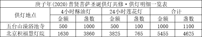 2020年3月14日,普贤菩萨圣诞当天,积福慧在北京积福慧灯院、五台山澡浴池寺启建供灯共修,如理如法按次第启供,直至3月20日供圆满。