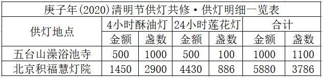2020年4月4日,清明节当天,积福慧在北京积福慧灯院、五台山澡浴池寺启建供灯共修,如理如法按次第起供,直至4月10日供圆满。