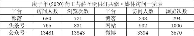 在此期间,佛教导航各媒体平台发布共修活动页面,访问总人数19500人,页面总浏览量20265次。共有968人次通过积福慧微商城、微信群、微信、支付宝转账等方式参与,随喜供灯款总额4275元。