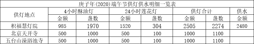 2020年6月25日,端午节当天,积福慧在北京积福慧灯院、北京天开寺、五台山澡浴池寺启建供灯共修,如理如法按次第起供,直至7月1日供圆满。