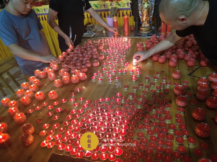 2020年9月2日,盂兰盆节当天,积福慧在积福慧灯院、九华山道场启建供灯共修,如理如法按次第起供,直至9月8日供圆满。