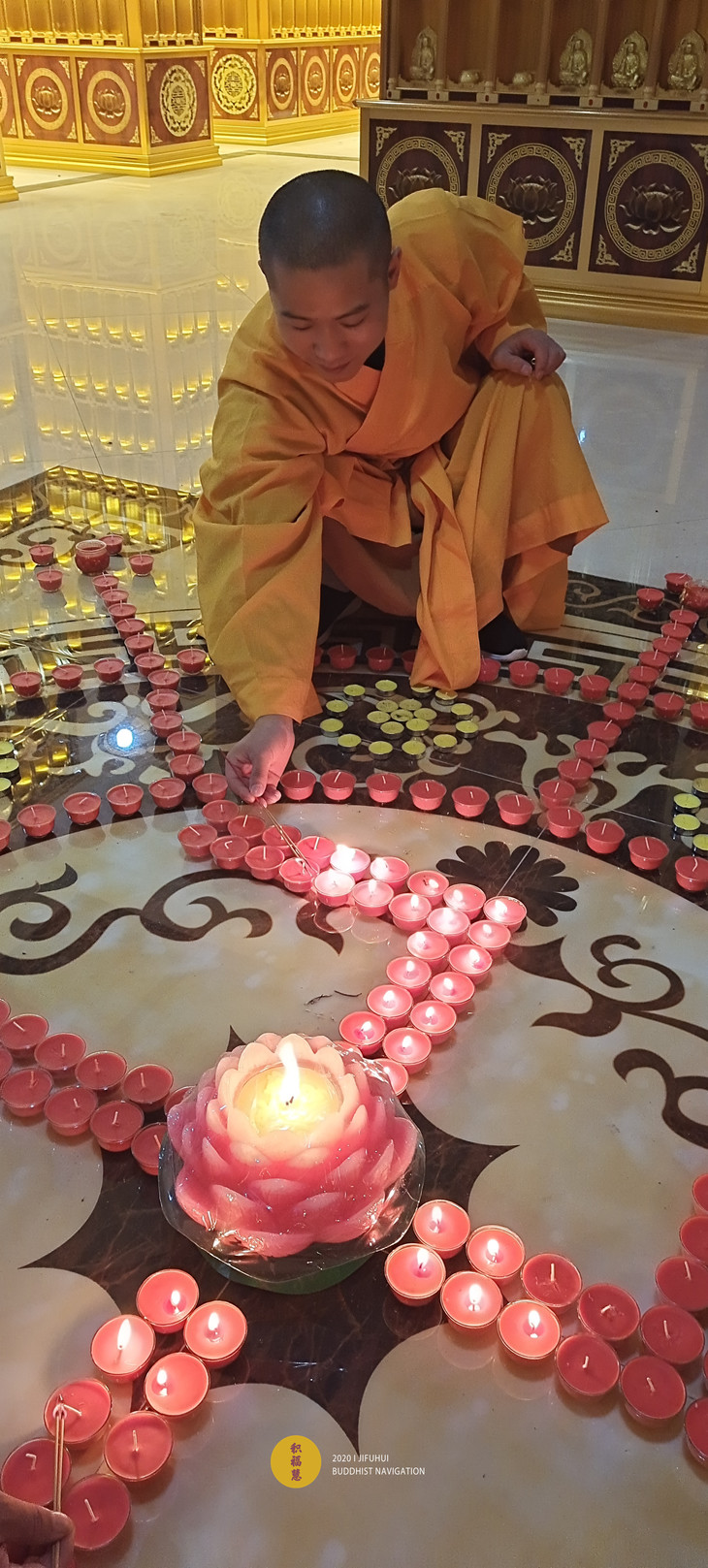 值此燃灯佛圣诞的日子,吾辈佛子以此燃灯、供水供养三世一切诸佛,愿摧灭无始以来的愚暗无明,希望世间众生,皆能发善心、立善愿,闻思佛法,积聚觉悟资粮。
