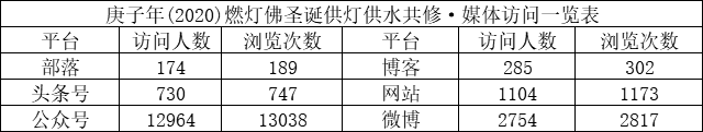 在此期间,佛教导航各媒体平台发布共修活动页面,访问总人数18011人,页面总浏览量18266次。通过积福慧微商城、微信群、微信、支付宝转账等方式参与,随喜供灯款总额5330元,供水款2730元。