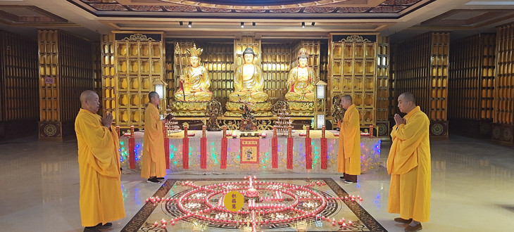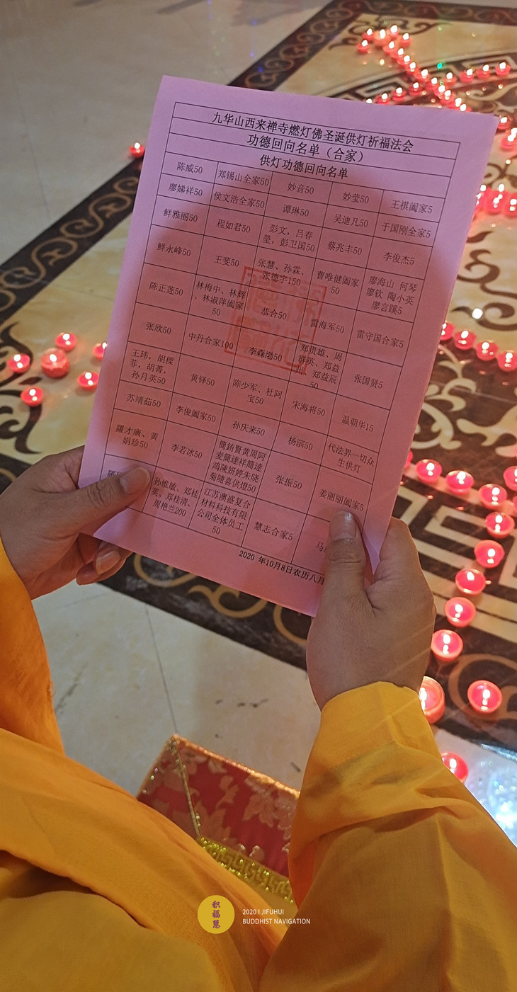 2020年10月8日,燃灯佛圣诞当天,积福慧在积福慧灯院、九华山道场启建供灯供水共修,如理如法按次第起供,直至10月14日供圆满。