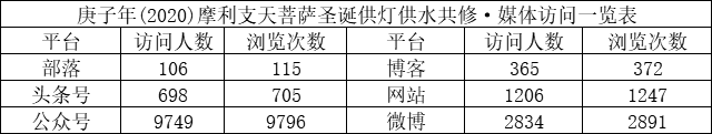 在此期间,佛教导航各媒体平台发布共修活动页面,访问总人数14958人,页面总浏览量15126次。通过积福慧微商城、微信群、微信、支付宝转账等方式参与,随喜供灯款总额4565元,供水款2180元。