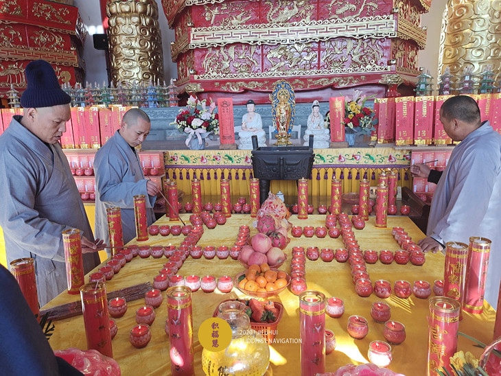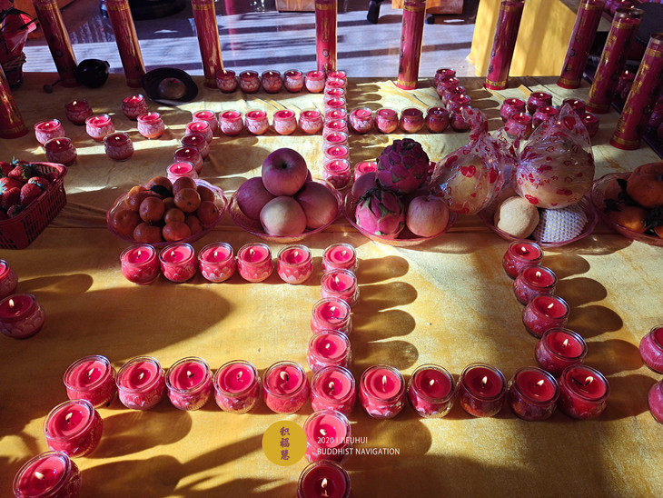 阿弥陀佛圣诞日供灯法会准备中。