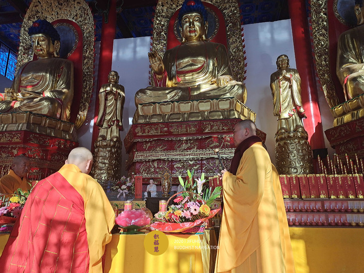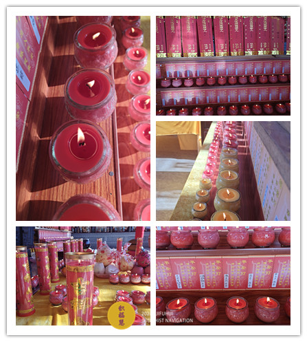 燃点佛光普照吉曜心灯,奉献香若果品酥酡妙供。称念阿弥陀佛万德宏名,讽颂往生西方净土灵章。