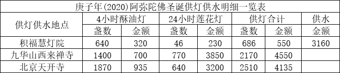 积福慧以此庚子年阿弥陀佛圣诞供灯、供水功德悉皆回向给出资者、点灯供水者、乃至一念随喜者,回向众等业消智朗,障尽福崇,身心安泰,善根增长,临命终时,预知时至,往生净土,早证菩提。