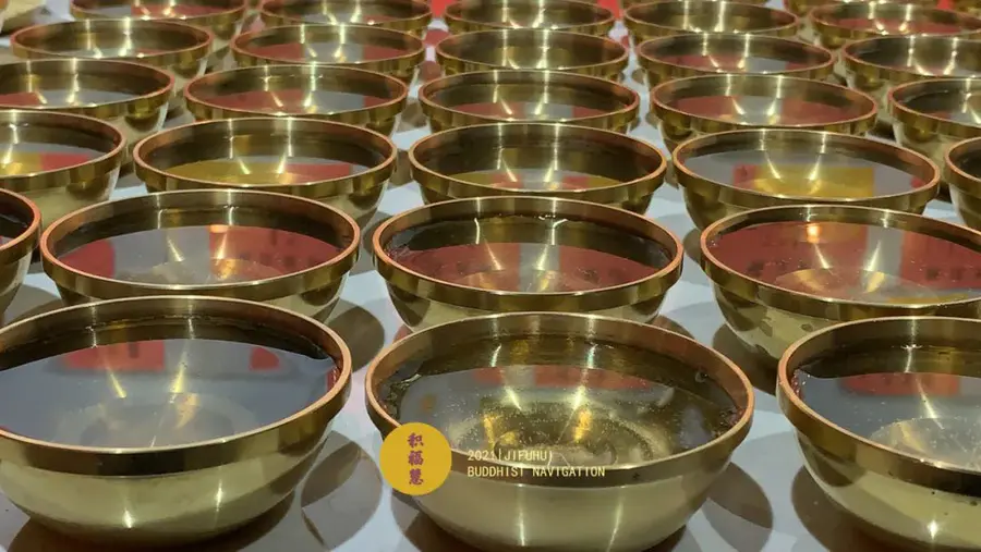 观世音菩萨普愿四众弟子精进修行,发菩提心,通过佛前供水,仰仗大悲观世音菩萨圆满福德,慈悲愿力加被一切众生清净身心,入佛菩提,即生安养。