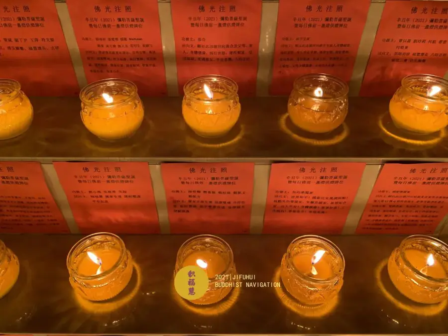 很多共修法会中都会供灯,而供灯有世间、出世间两种功德。从世间角度讲,供灯者生生世世眼目清净,身心健康;最主要的是它出世间的功德,供灯能让我们生生世世获得智慧的明灯,遣除无明黑暗。